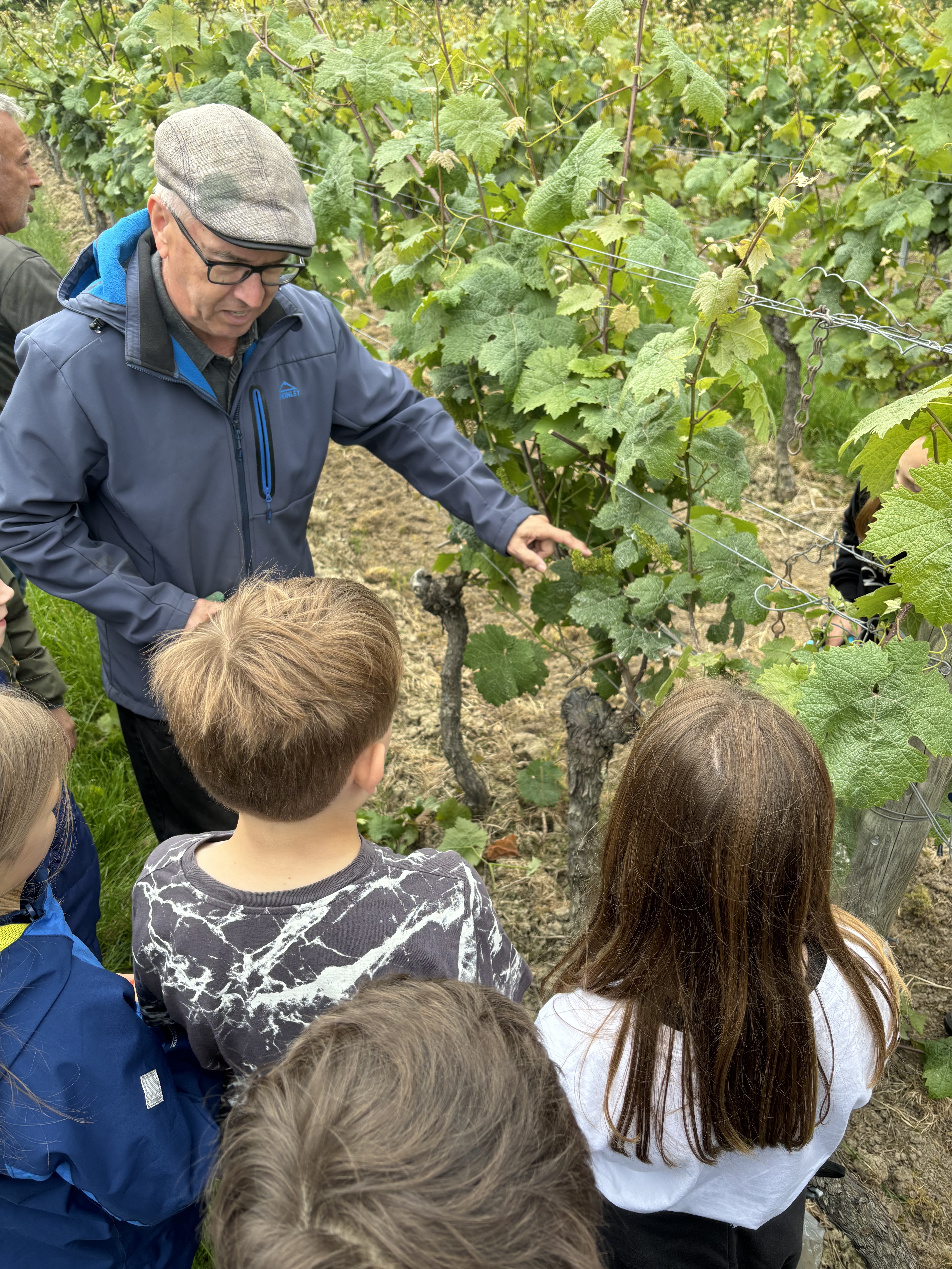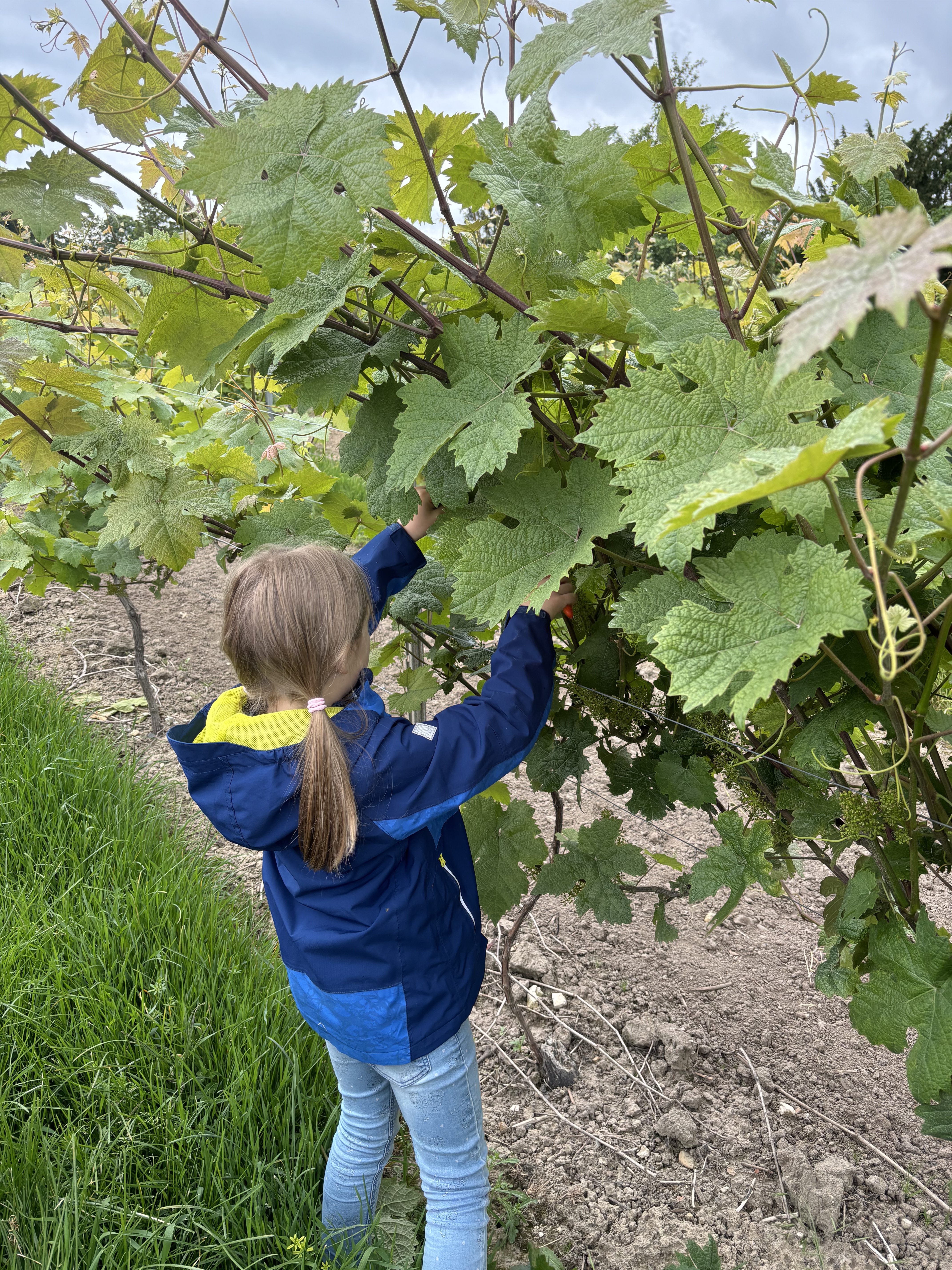 Kinderwingert Von Frauke CzereminAm 20. Juni 2024 Für die Drittklässler ging es wieder in Begleitung von Herrn Runkel und Herrn Oehler mit dem Planwagen zum Kinderwingert. Denn der nächste Arbeitsschritt stand an: Das Entblättern der Trauben zur besseren Durchlüftung. (V. Dörr) [Zeige eine Slideshow]